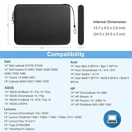 Thông tin sản phẩm FINPAC Universal Sleeve for 13-14 inch Laptop, [Water-Resistant] Shockproof EVA Protective Case for 13" 14" Laptop, Compatible with Macbook/Dell/Asus/HP/Acer, Black