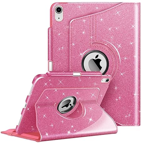 Fintie Case for iPad 11 Generation 11 Inch 2025 (A16), iPad 10 Generation 10.9 Inch 2022 with Pencil Holder - Protective Cover with 360 Degree Rotating Stand and Auto Sleep/Wake, Glitter Pink