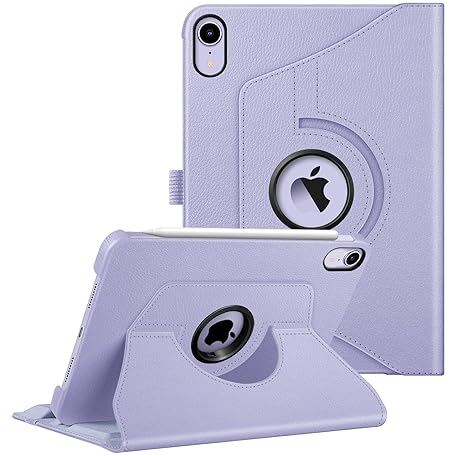FINTIE Case for iPad Mini A17 Pro (2024) 8.3 Inch, iPad Mini 7th / 6th Generation (2024/2021), 360 Degree Swiveling Stand Protective Back Cover, Auto Wake/Sleep, Lilac Purple