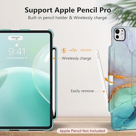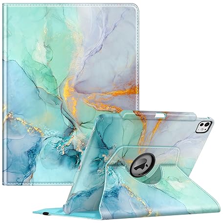 Thông tin sản phẩm Fintie Case for iPad Pro 13 Inch M4 (2024) (Model Number: A2925/A2926/A3007) with Pencil Holder - Protective Cover with 360 Degree Rotating Stand and Auto Sleep/Wake Function, Emerald Marble