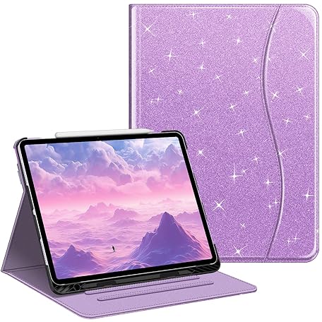 Fintie Folio Case for iPad Air 13-inch (M3) 2025 / (M2) 2024, Multi-Angle Viewing Protective Stand Cover with Pencil Holder & Pocket, Auto Sleep/Wake, Glittering Purple