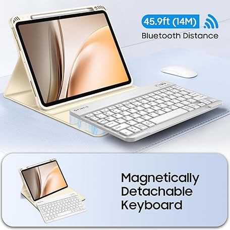 Thông tin sản phẩm FINTIE Keyboard Case for iPad Air 11-inch M3 (2025) / M2 (2024), iPad Air 5th (2022) / 4th Generation 10.9 Inch - Soft TPU Cover w/Magnetically Detachable Bluetooth Keyboard, Starlight