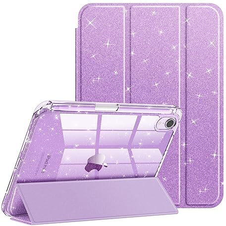 Fintie Slim Case for iPad Mini 7 (A17 Pro, 7th Generation) 2024 / iPad Mini 6 (6th Gen) 8.3 Inch - [Built-in Pencil Holder] Glittering Sparkly Shockproof Cover w/Shiny Clear Back Shell, Purple