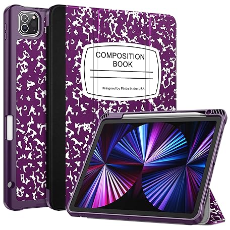 Fintie SlimShell Case for iPad Pro 11-inch (4th / 3rd Generation) 2022/2021 - Soft Flexible TPU Stand Back Cover with Pencil Holder, Also Fit iPad Pro 11" 2nd / 1st Gen, Composition Book Purple