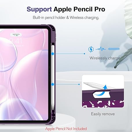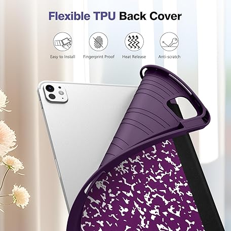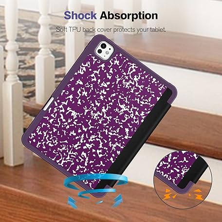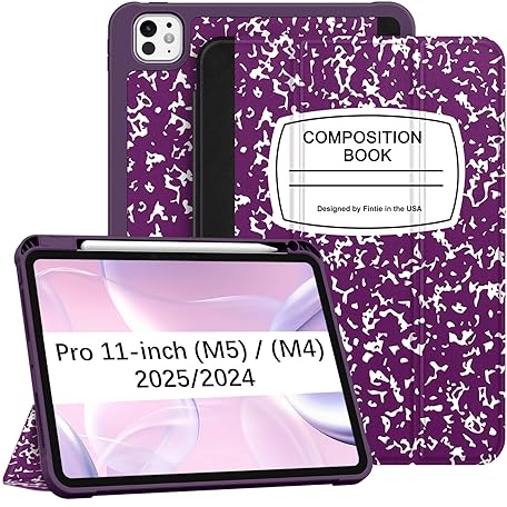 Thông tin sản phẩm Fintie SlimShell Case for iPad Pro 11-inch M4 (2024) (Model Number: A2836/A2837/A3006) - [Built-in Pencil Holder] Soft Flexible TPU Protective Stand Back Cover, Composition Book Purple