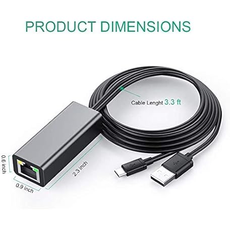 Thông tin sản phẩm Fire TV Stick Ethernet Adapter - Micro USB to LAN RJ45 with Power Supply Cable for Fire Stick, Chromecast 1/2/3, Ultra 4k, Cube