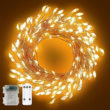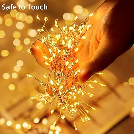 Thông tin sản phẩm Firecrackers 200 LED 3m String Lights - Battery Operated Cluster Lights with 8 Modes Remote Timer for Christmas Tree, Garden, Curtain, Gazebo Decorations