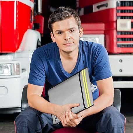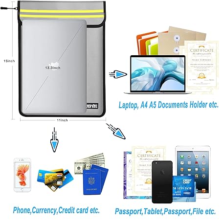 Thông tin sản phẩm Fireproof Waterproof Money Document Bag - 15"x 11" Safe Zipper Bags with Reflective Strip, Fire & Water Proof Storage Organizer Pouch for Important Documents Holder,File,Cash,Passport(Black+Gray)