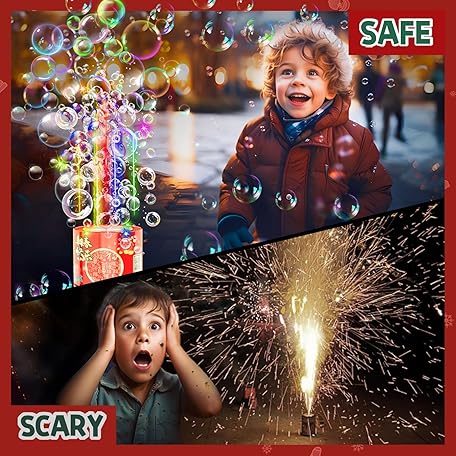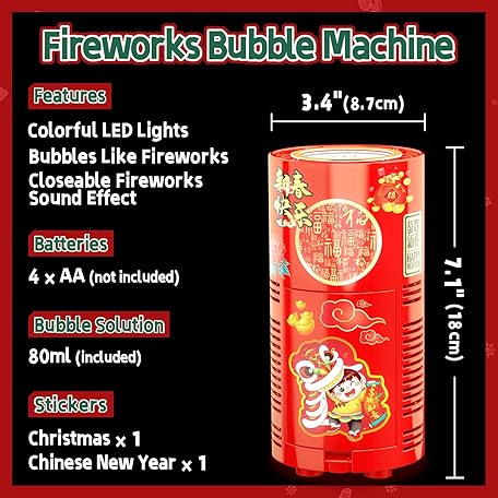 Thông tin sản phẩm Fireworks Bubble Machine (13Holes) with Colorful Led Lights, Automatic Sparklers Blower Toys, Portable Bubble Maker for Kids Party Birthday Wedding Bonfire Night Chinese New Year