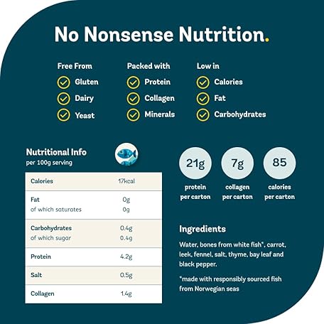 Thông tin sản phẩm Fish Bone Broth | Liquid Collagen & Protein | Low Carb, Keto & Gluten Free | Clear Liquid Fish Broth, not Fish Stock Cubes, Powder, or Concentrate | 6 x 500ml