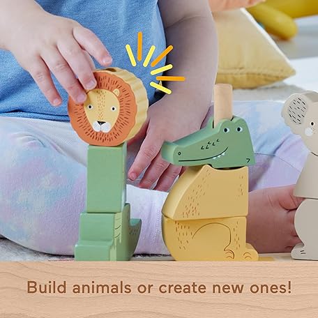 Thông tin sản phẩm Fisher-Price Wood Baby Toy Stack & Sort Animals, 10 Wooden Pieces for Developmental Play for Infants & Toddlers Ages 1+ Years, HXV04
