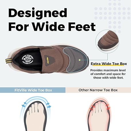 Thông tin sản phẩm FitVille Mens Extra Wide Fit Trainers, Walking Hiking Slip-On Shoes with High Rebound, Non-Slip & Foot Pain Reief Sneaker for Outdoor Casual