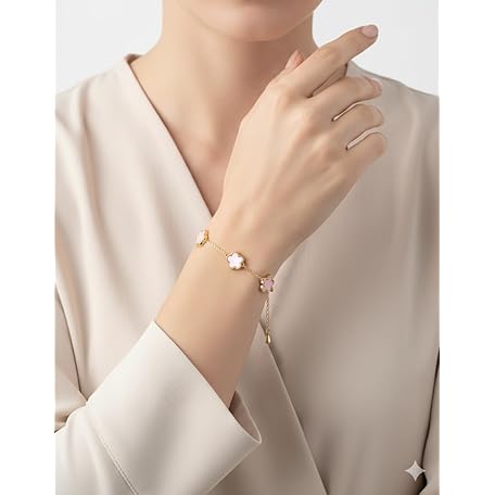 Five Leaf Clover Bracelet, 18k Gold Plated Stainless Steel, Waterproof