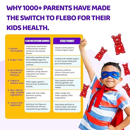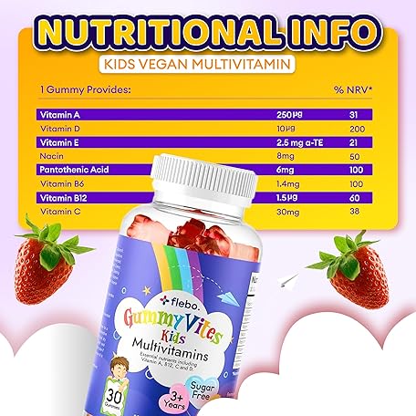 Thông tin sản phẩm Flebo Kids Multivitamin Gummies (3-12 Years) - Kids Vitamins Gummies (30) - Vitamin A,B6,B12,C,D and E - Chewable Childrens Vitamins for Immunity, Bone Health & Energy Support - Strawberry Flavour