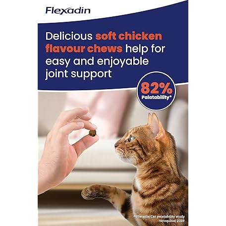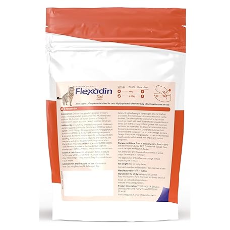 Thông tin sản phẩm Flexadin Joint Care for Cats | Joint Supplement Chews for Cats | Aids Mobility & Flexibility | Glucosamine, Chondroitin, Omega 3 & Vitamin E | 60 Chews