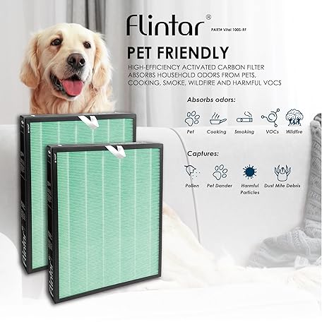 Thông tin sản phẩm Flintar Vital 100S Toxin/Smoke Absorber Replacement Filter, Compatible with LEVOIT Vital 100S Air Purifier, H13 True HEPA + Activated Carbon Replacement filter, Part # Vital 100S-RF-TX, 2-Pack
