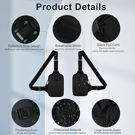 Thông tin sản phẩm flintronic Sling Bag, Waterproof Chest Bag for Men and Women, Mini Breathable Crossbody Shoulder Bag with Zipper, Lightweight Shoulder Backpack for Travel Hiking Cycling Camping Outdoor Sports