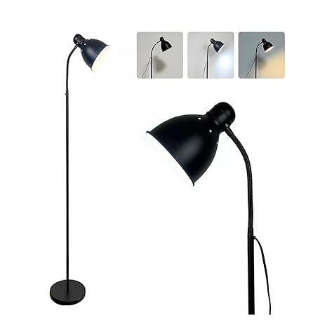 Floor Lamp Metal Standing Adjustable Neck Heavy Metal Base Reading Home Light | LED Floor Light for Bedroom, Living Room - Bulb Not Include (Black)