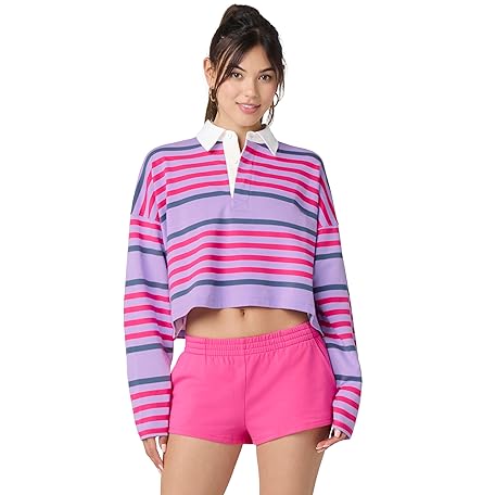 florence by mills Women's Fbm Playbook Collection Sporty Terry Crop Rugby Shirt Pullover Sweater