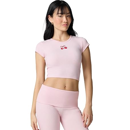 florence by mills Women's Rib Cherry Short Sleeve Tee Rib Cherry Short Sleeve Tee (Pack of 1)
