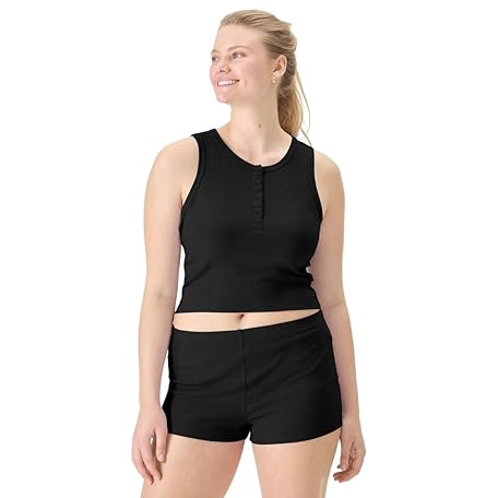 florence by mills Women's Rib Refresh Henley Tank Rib Refresh Henley Tank