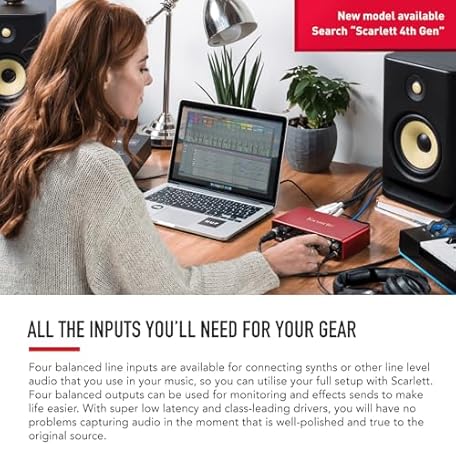 Thông tin sản phẩm Focusrite Scarlett 4i4 3rd Gen USB Audio Interface for Recording, Songwriting, & Streaming — High-Fidelity, Studio Quality Recording, with Transparent Playback