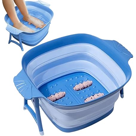 Foldable Foot Bath Tool, Foot Spa Bucket with Foot Massage Ball, Stress Relief Collapsible Foot Spa, Foot SPA Bath Tub,Detox and Massage (Blue, with stand)