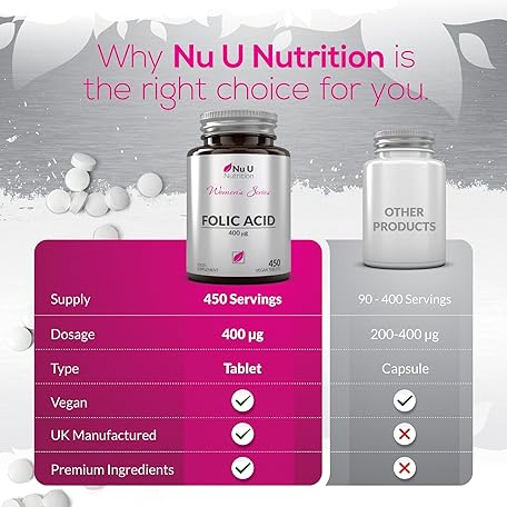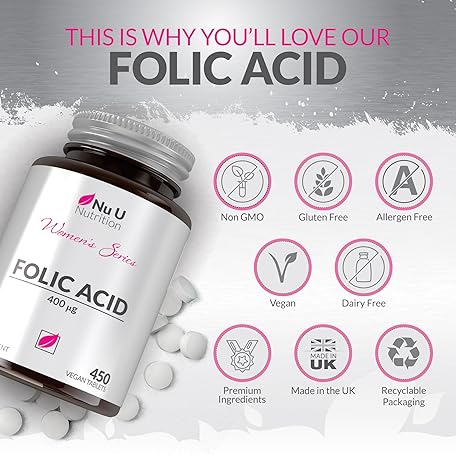 Thương hiệu Nu U Nutrition là cái tên nổi tiếng được rất nhiều khách hàng trên thế giới chọn lựa. Với kiểu dáng đẹp mắt, sang trọng, sản phẩm Folic Acid 400 mcg - 450 Vegan Tablets - 15 Month Supply - High Strength Pregnancy Vitamins for Women - Vitamin B9 Supports Maternal Tissue Growth During Pregnancy - Prenatal Vitamins là sự lựa chọn hoàn hảo nếu bạn đang tìm mua một món cho riêng mình.