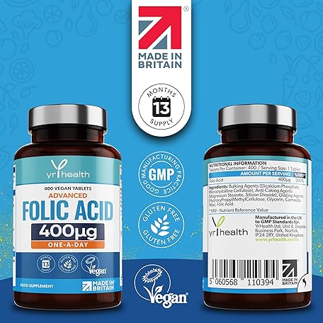 Sản phẩm Folic Acid 400 mcg Tablets - 400 Vegan Vitamin B9 Tablets for Women, 13 Month Supply, Folic Acid Pregnancy for Normal Function of Immune System and Maternal Tissue Growth - Made in The UK by YrHealth đang được bán với giá ưu đãi là $10.682 tại nước Anh.