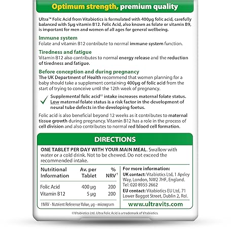 Sản phẩm Folic Acid Tablets with Vitamin B - 60 Tablets, Vitabiotics Ultra đang được bán với giá ưu đãi là $5.7443 tại nước Anh.