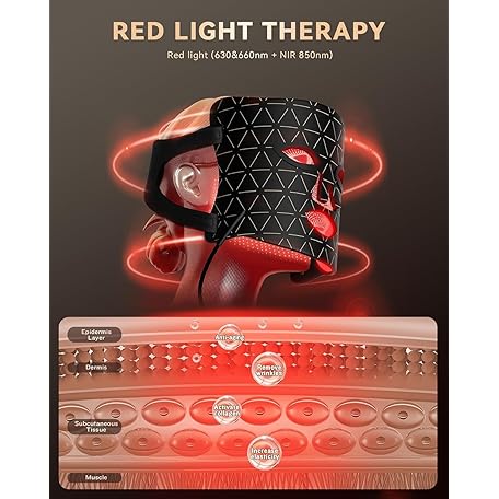 Thông tin sản phẩm FOLOKE LED Light Therapy Mask Skin Care Mask, LED Red Light Therapy 630nm & 830nm Wavelength for Home Use, Body Beauty Machine for Care at Home(Black)