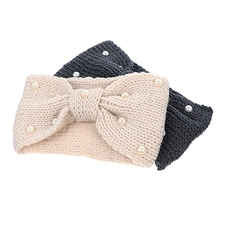 FONDOTIN 2pcs Knitted Bowknot Hair Bands for Women Pearl Embellished Delicate Headbands Soft Comfortable and Skin-friendly Hair Accessories for Daily Wear and Giving