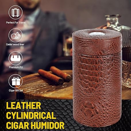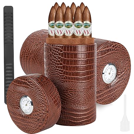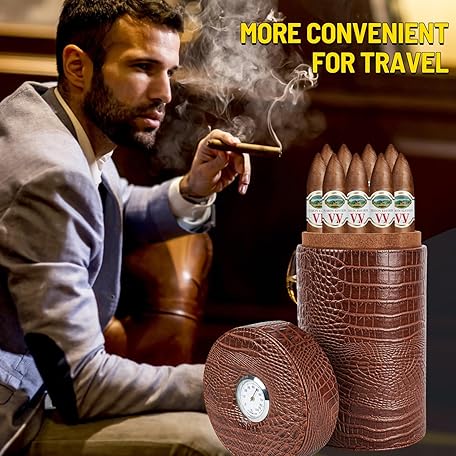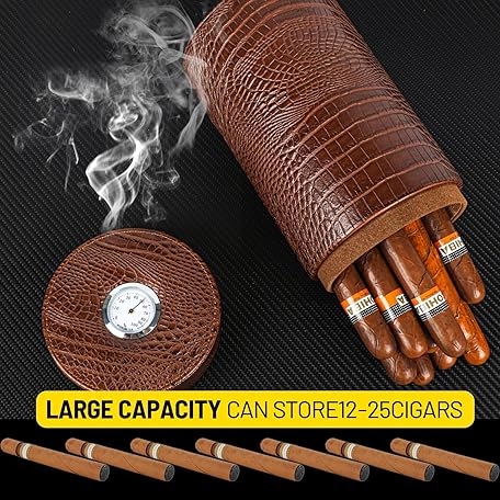 Thông tin sản phẩm For 5-30 Cigars, Cigar Humidor Cedar Wood Lined Humidor Travel Cigar Case with Outdoor Hygrometer, Lined Portable Leather Cigar Humidor with Humidification Strips, Cigar Accessory Set