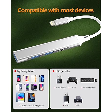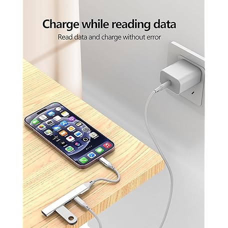 for Apple Lightning to USB 3 Camera Adapter for IPhone 14 Card Reader (4in1) Cable for IPad Pro Max OTG Lighting Hub Flash Drive Adaptor Female Port Data Transfer Charger Microphone Memory Mouse USB A