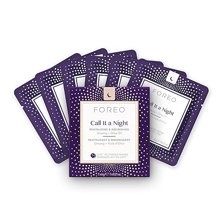 Thông tin sản phẩm FOREO Call it a Night UFO Activated Facial Mask for Dryness & Fine Lines, 7 pack, Revitalizing & Nourishing, Ginseng & Olive Oil, Clean Formula, Cruelty-free, Compatible with all UFO devices