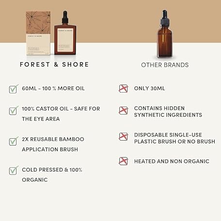 Thông tin sản phẩm Forest & Shore Castor Oil 100% Natural & Organic for Hair Growth, Eyebrows, Eyelashes and Skin Hair Tonic Oil