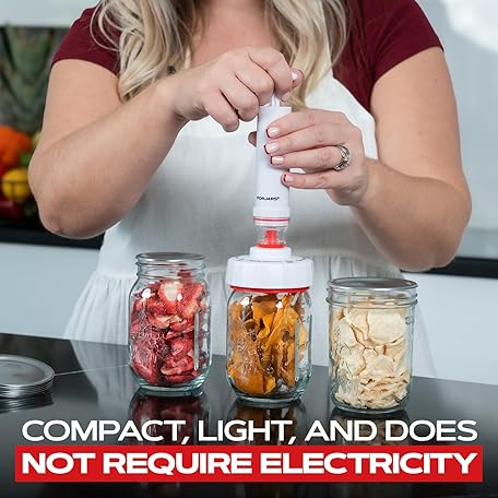 Thông tin sản phẩm FORJARS Jar Vacuum Sealer Accessory Set for Mason Jars - Compatible with Regular and Wide Mouths, Cordless Pump for Portable Manual Hand Sealing, no electric. Vacuum Sealer with Plastic Lids and Hoses