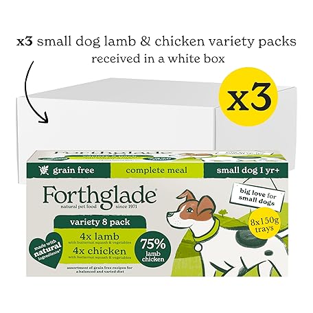Thông tin sản phẩm Forthglade Wet Dog Food Variety Pack - Small Dogs (24 x 150g Trays), Grain Free, Hypoallergenic, Stomach Sensitive, Natural Ingredients, Chicken & Lamb with Veg