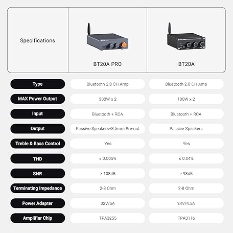 Thông tin sản phẩm Fosi Audio BT20A Pro Bluetooth Amplifier Hifi, 300W x2 Mini Stereo Amplifier with TPA3255 Chips, Replaceable Op-Amps, Bass and Treble Control, Class D Amp 2.0 Channel for Home Audio Outdoor Speakers