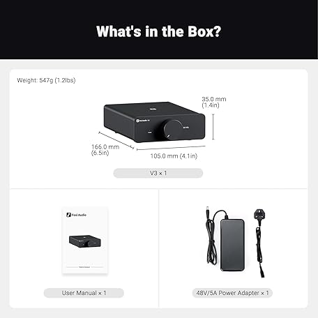 Thông tin sản phẩm Fosi Audio V3 300W Class D Stereo Power Amplifier, TPA3255 Chip HiFi Audio Amplifier for Home Theater and Bookshelf Speakers, Compact Design with Advanced Heat Dissipation with 48V5A Power Supply