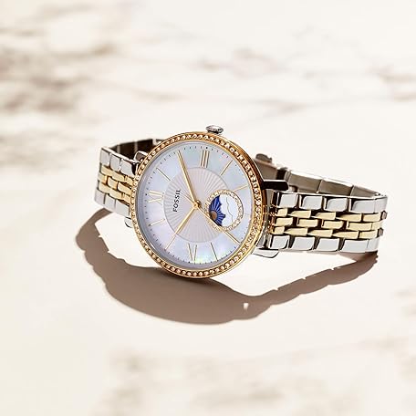 Sản phẩm Fossil Jacqueline Watch for Women, Quartz Three Hand moonphase Movement with Stainless Steel Strap đang được bán với giá ưu đãi là $228.9981 tại nước Anh.