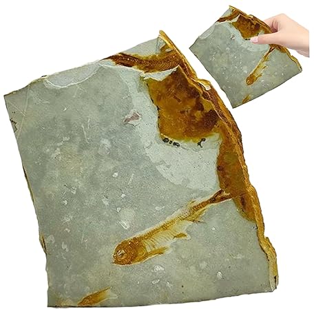 Fossil Stone Faux Fish Fossils Real Rock Chinese Wolffin Fish Fossil Specimen Stone Ornaments for Basic Paleontology Biological Science Education Supply (Stand Not Included)