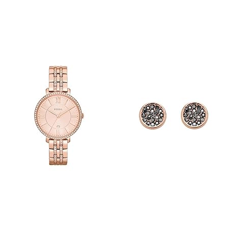 FOSSIL Women's Jacqueline Rose Gold-Tone Stainless Steel Watch and Brass Earrings, Set