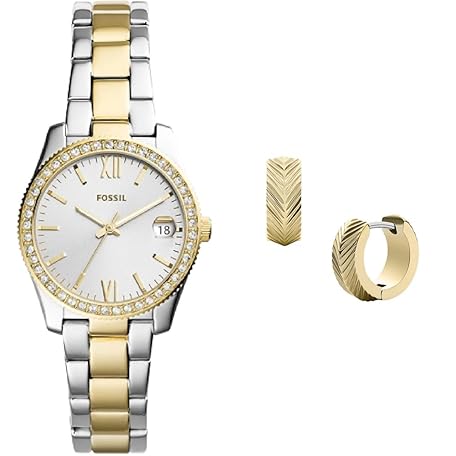 FOSSIL Women's Scarlette Mini Two-Tone Stainless Steel Watch and Harlow Gold-Tone Earrings, Set