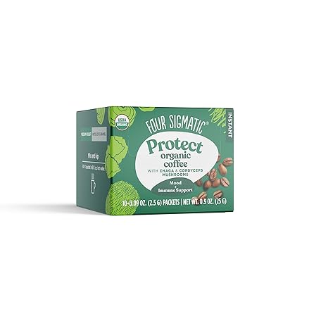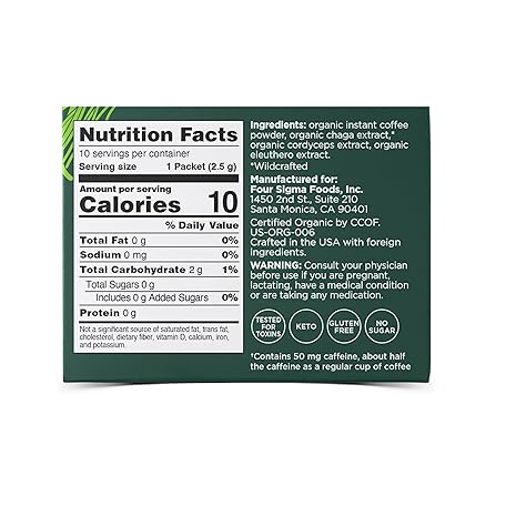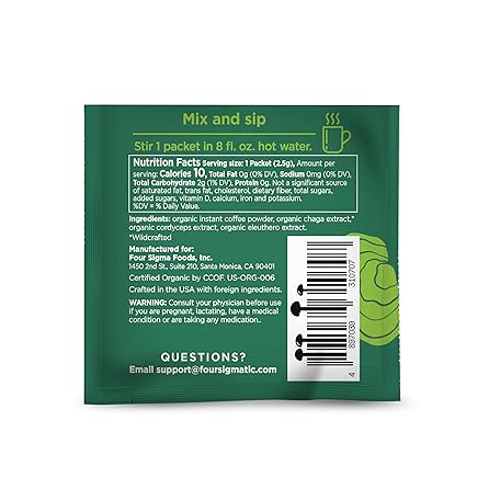 Thông tin sản phẩm Four Sigmatic Foods, Organic Instant Coffee Mix with Chaga and Cordyceps Mushrooms, 0.09 Ounce, 10 Pack (Packaging May Vary)