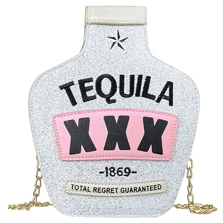 Fozehlad Rahada Women Sequins Crossbody Bag Tequila Bottle Shaped Shoulder Handbags Elegant Clutch Chain Purse for Girls silver Size: One Size