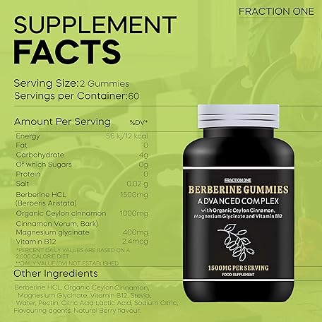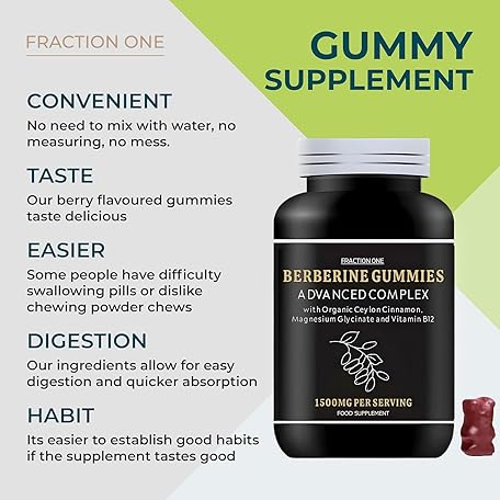 Thông tin sản phẩm Fraction One Berberine Gummies – 120 Gummies – 1500 mg per Serving, Ceylon Cinnamon 1000mg and Vitamin B12, Magnesium Glycinate 400mg – Supports Immunity, Improve Metabolism – Vegan – 60 Days Supp