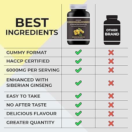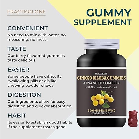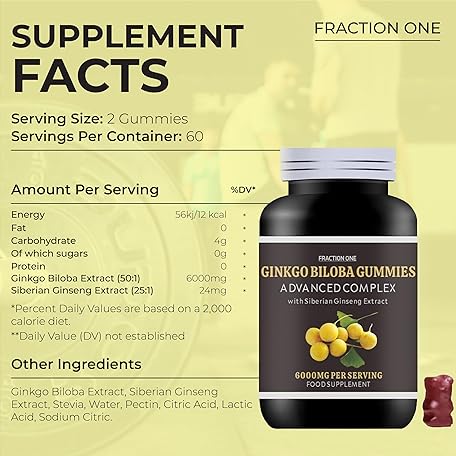Thông tin sản phẩm Fraction One Ginkgo Biloba Gummies – 120 Gummies – 6000 mg per Serving, 24mg Siberian Ginseng - Ginkgo 50:1 Extract - Siberian Ginseng 25:1 Extract – Vegan – Support Immune System – 60 Days Supply
