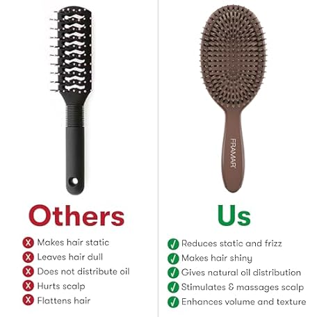 Thông tin sản phẩm FRAMAR Soft Boar Bristle Hair Brush - Boars Hair Brush For Women, Brush For Fine Hair, HairBrush for Women, HairBrush Boar Bristles – Chocolate