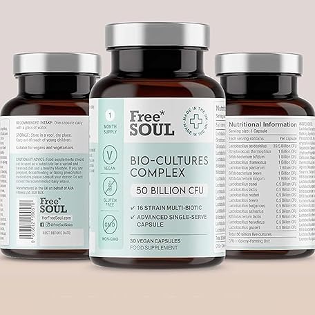 Sản phẩm Free Soul 50 Billion CFU Pro Bio Cultures Complex with 16 Live Strains | Advanced Single Capsule Serving with Multi Strain Formula | Vegan Digestive Enzyme Supplement for Gut Health | 30 Capsules đang được bán với giá ưu đãi là $22.89 tại nước Anh.